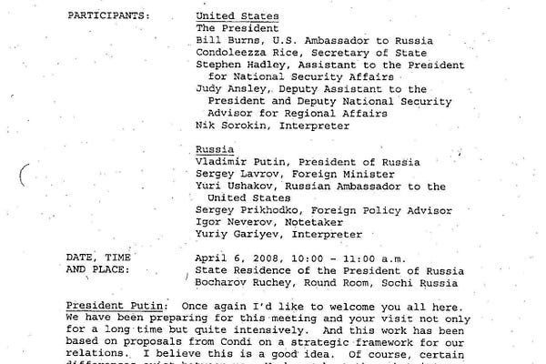 The Bush-Putin Transcripts--6 April 2008