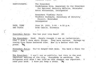 The Bush-Putin Transcripts--Jun 16, 2001