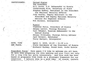 The Bush-Putin Transcripts--6 April 2008