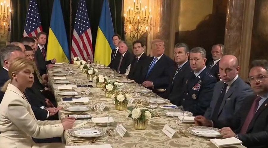 MAL--The Negotiations that will lead to nowhere...President Zelensky and his delegation were set to meet Trump and his at 1:00pm local time. He landed in Florida at 11:35am ET and reporters noticed that not a single U.S. official to greet Zelensky upon his arrival, which is offensive. Yesterday in Nova Scotia, Zelenskyy was met by Prime Minister Mark Carney when he landed.