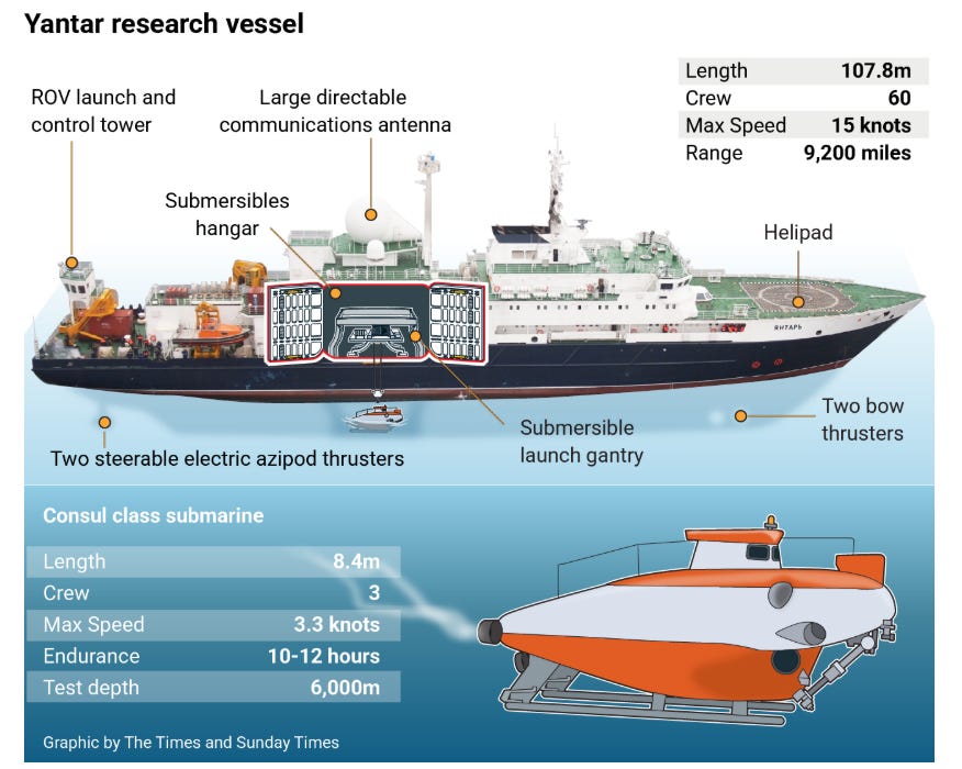 The Times: Russian submarines are secretly being deployed alongside Moscow’s best-known spy ship to map critical undersea infrastructure around Britain, raising fears of potential sabotage.