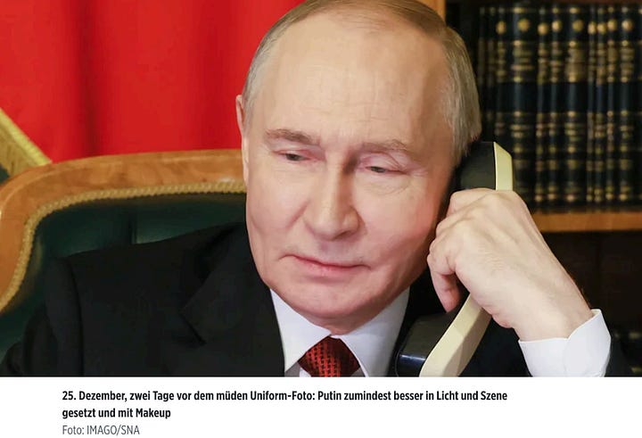 Vogel continued, “The message is to communicate that the commander-in-chief has the situation under control. A victorious Putin in civilian clothes in 2022 is followed, more than three years later, by a Kremlin leader who appears weary in uniform. According to NATO, there have been 1.2 million casualties on the Russian side in between.”